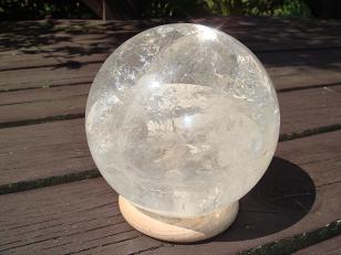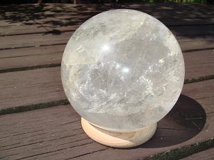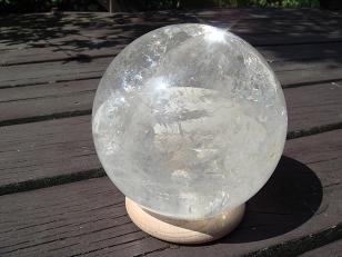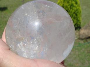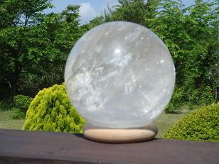 とても透明なレインボ−・ヒマラヤ水晶球(ロック・クリスタル)。水晶球全体にレインボー(虹)が輝いている凄いクリスタルです。