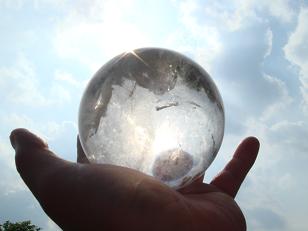 とても透明なレインボ−・ヒマラヤ水晶球(ロック・クリスタル)