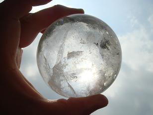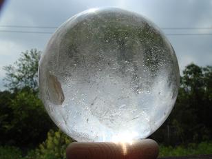 陽を透かしてみるとこんな感じ。ヒマラヤの壮大なエネルギーを感じるこのクリスタル球。