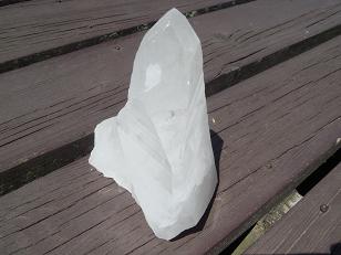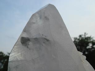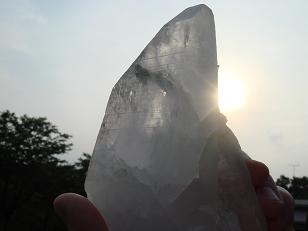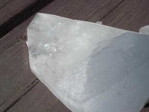 ヒマラヤロック・クリスタル。 大きな太いポイントは長さ約130ミリ、幅約40〜65ミリもあります。 レインボーが見えますか?